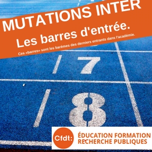 Les mutations des personnels du second degré ont lieu en deux temps : il y a d’abord une première étape pour obtenir une académie, appelée mouvement inter-académique, puis une seconde étape qui se déroule à l’intérieur de l’académie obtenue, appelée intra-académique.